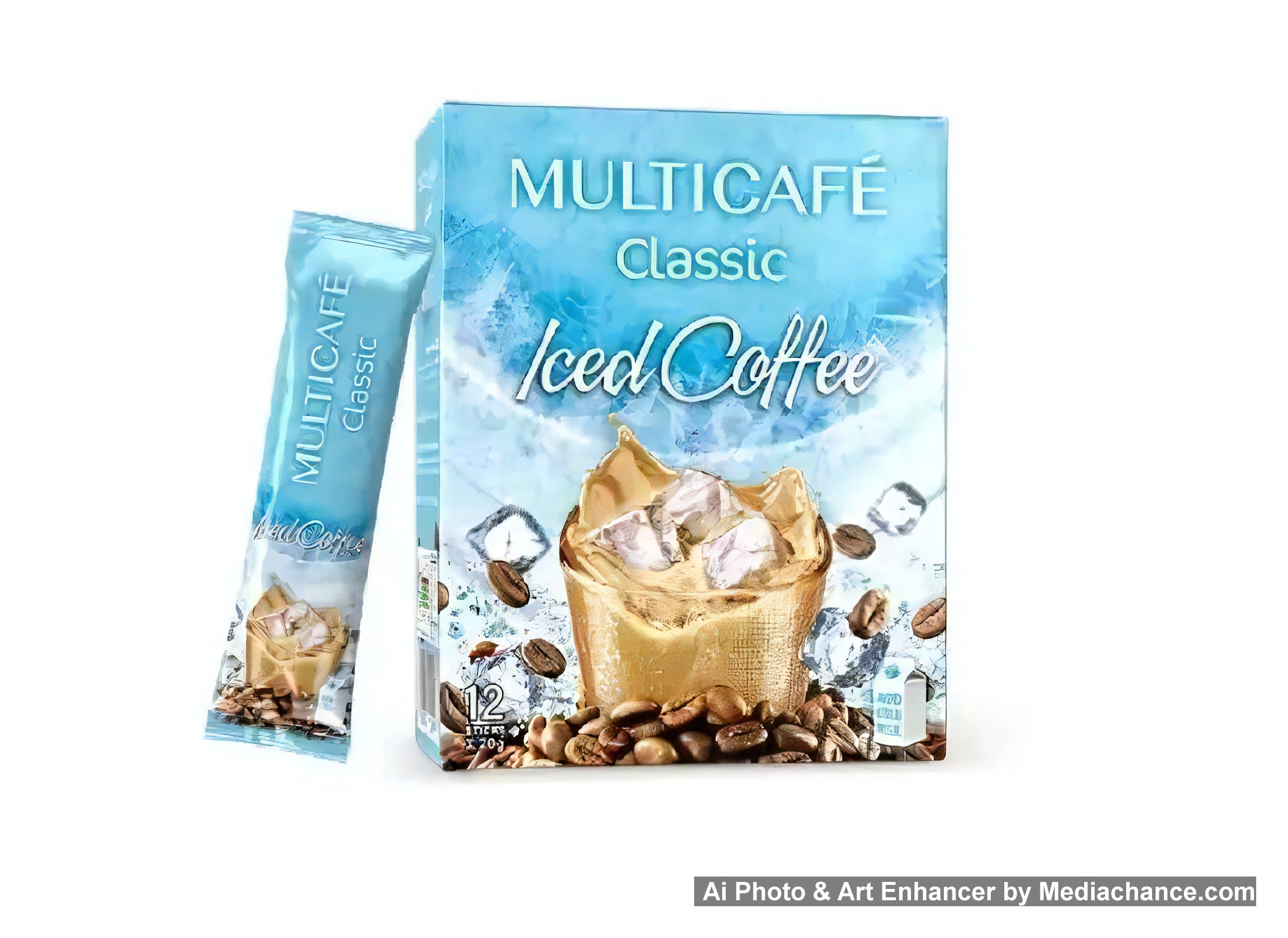 آیس کافی مولتی کافه در بستهبندی ۱۲ عددی ارائه میشود. هر بسته شامل ساشههایی است که محتوی پودر قهوه فوری مخصوص تهیه آیس کافی هستند. ترکیبات اصلی این محصول معمولاً شامل موارد زیر است: