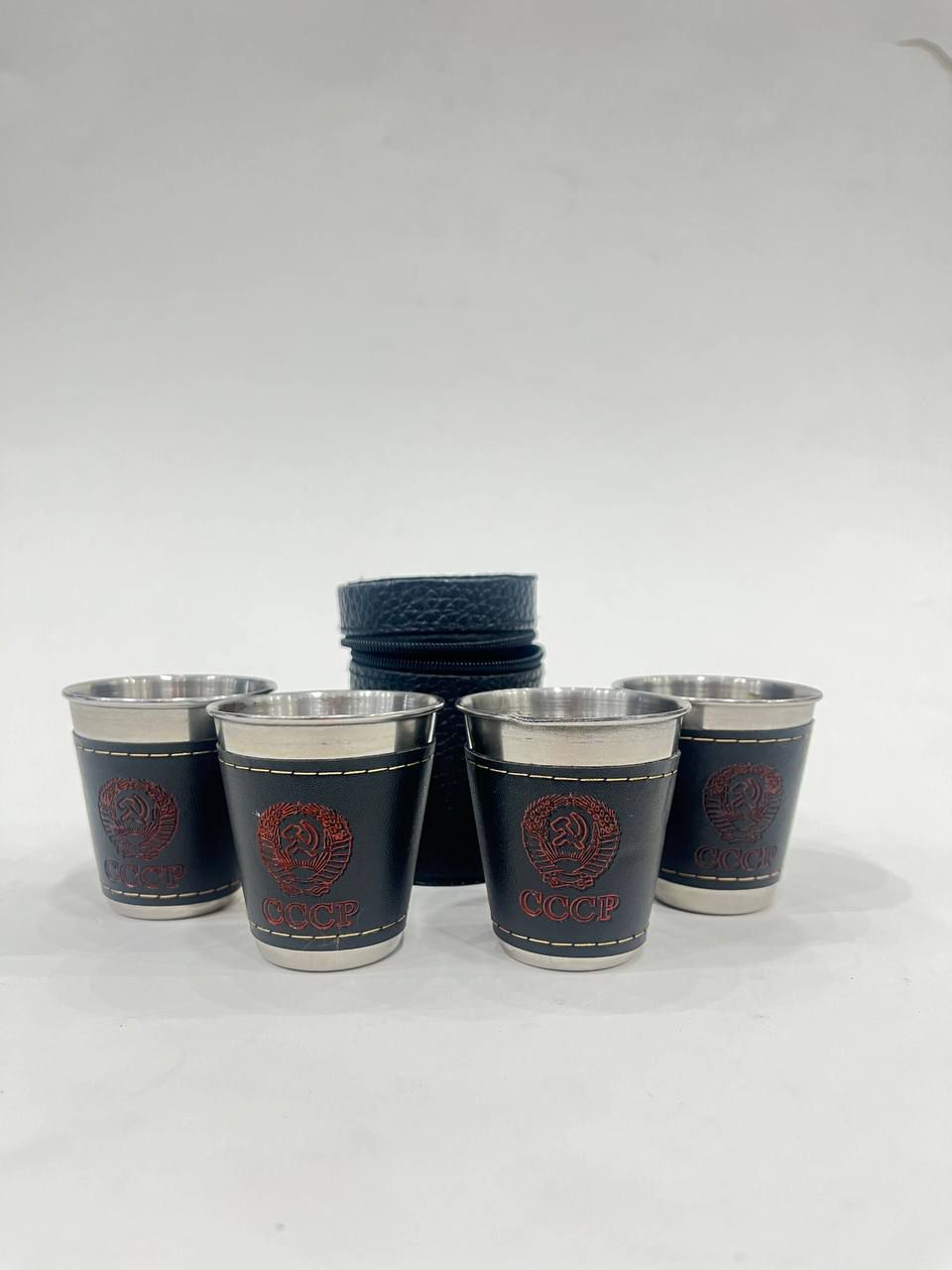 شات استیل 4عددی جلد چرمی کیف دار
